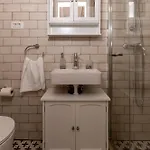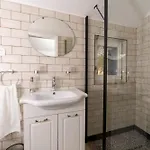 Zur Ausstattung des Badezimmers gehören auch eine getrennte Toilette und eine Dusche.